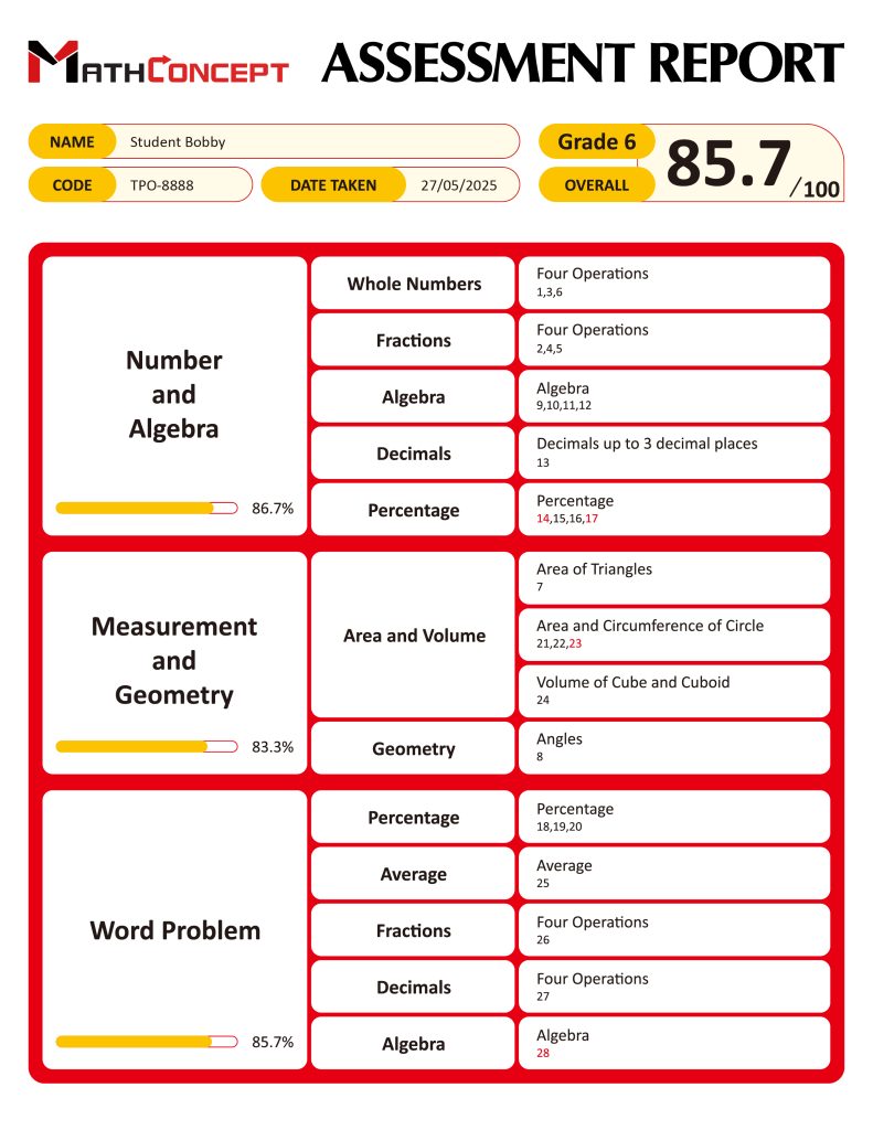 - For parents: Instead of guessing whether your child is struggling or coasting, you’ll see clear results broken down by topic. This gives you the reassurance of knowing exactly where your child stands, and what support will make the biggest difference.
